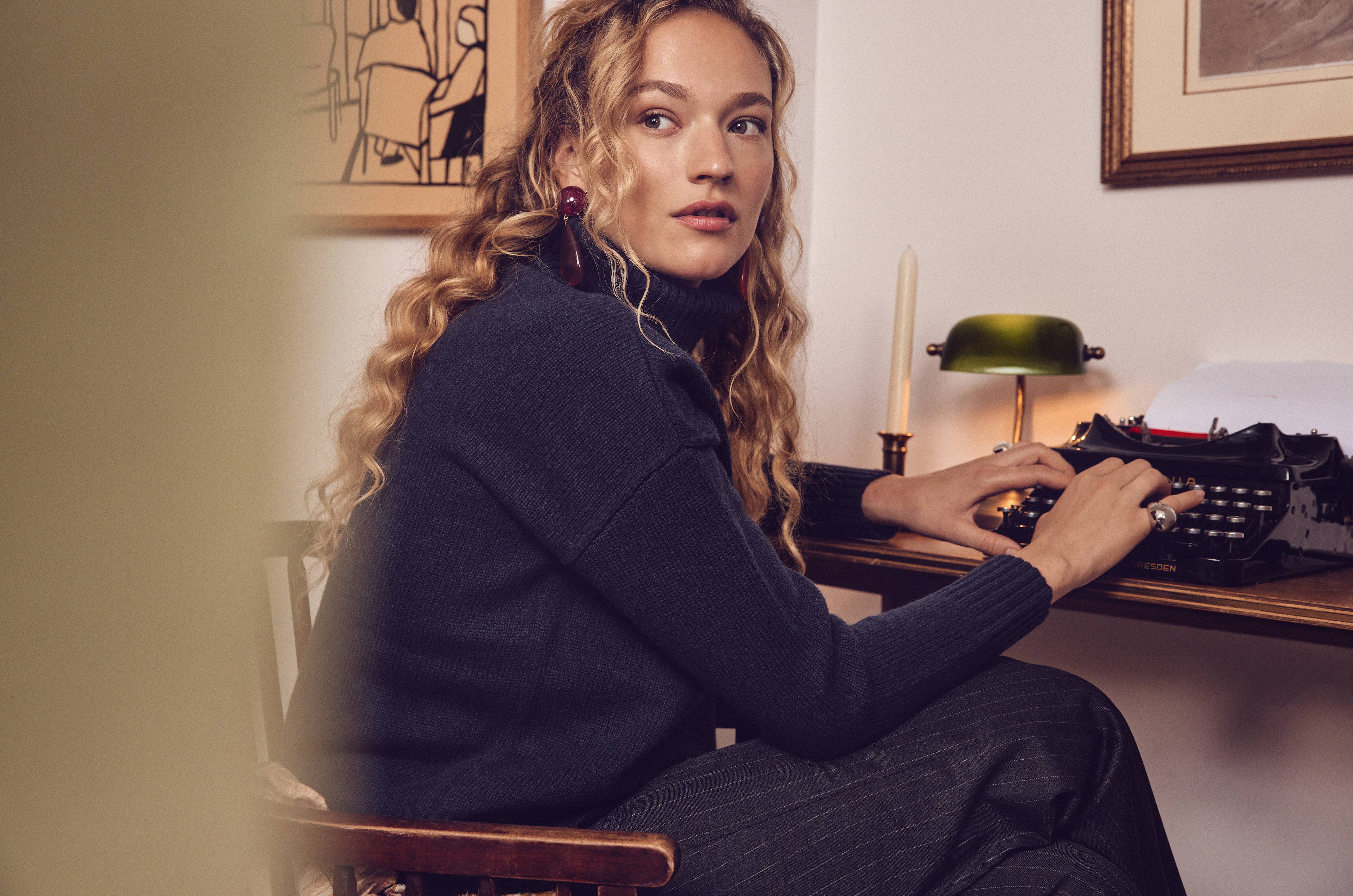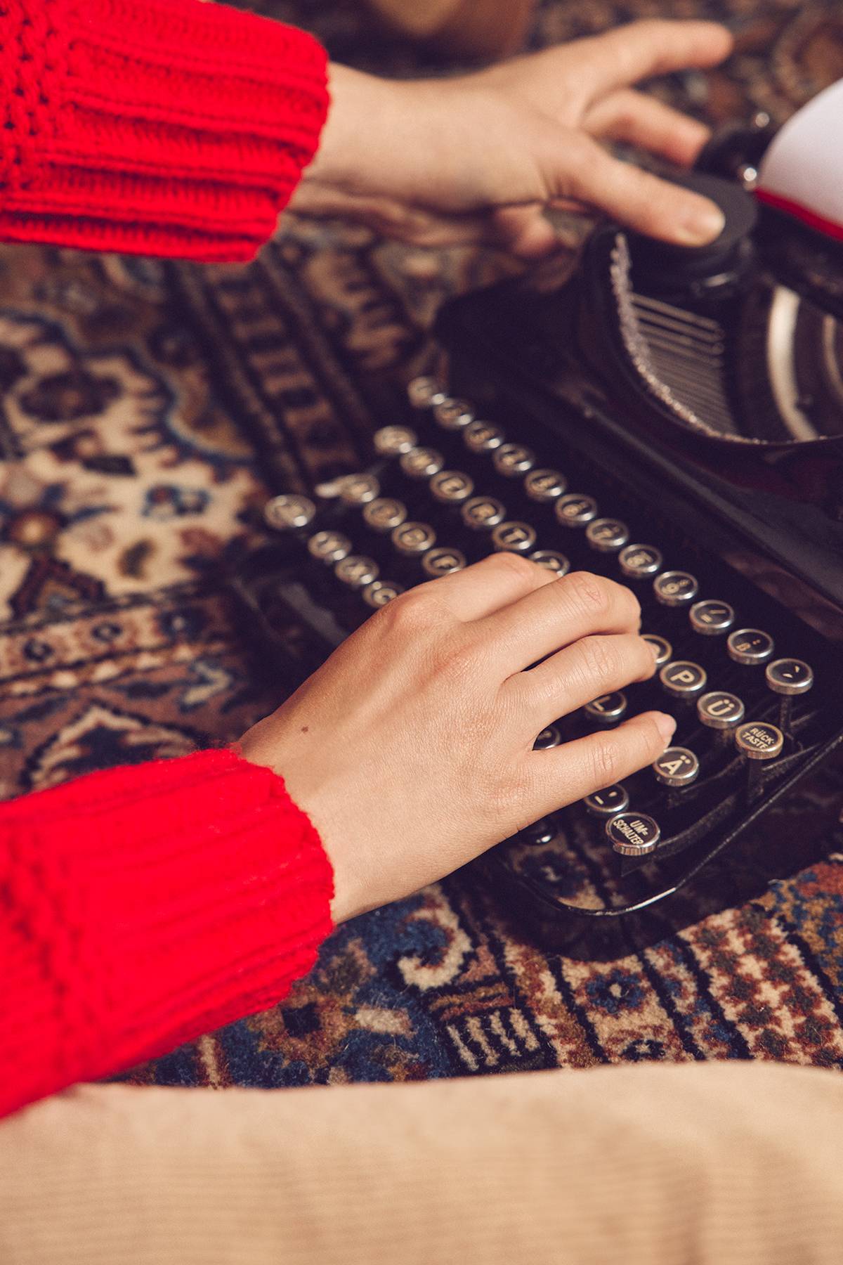 Auf der alten Schreibmaschine lässt die Inspiration auf sich warten, während sie nach dem Funken sucht.