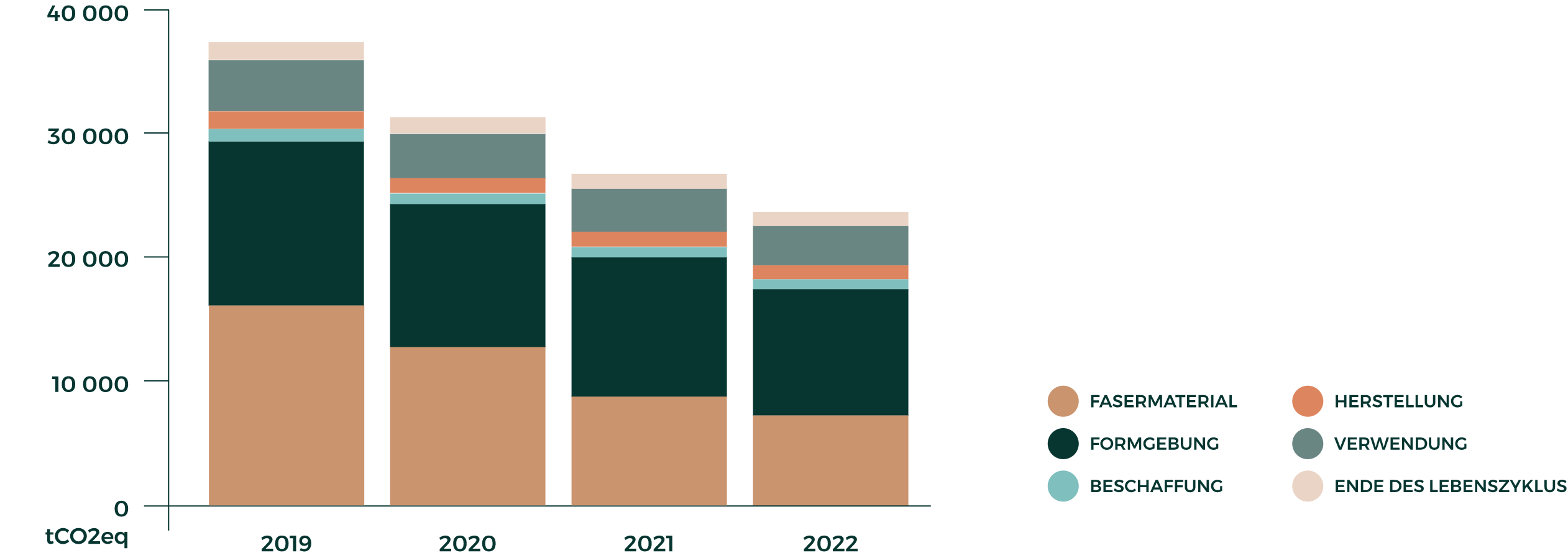 Die Emissionen der Kategorie Scope 3: indirekte Verantwortung (Einkauf, Transport, Verwendung verkaufter Produkte...) wurden zwischen 2019 und 2022 um 33% reduziert