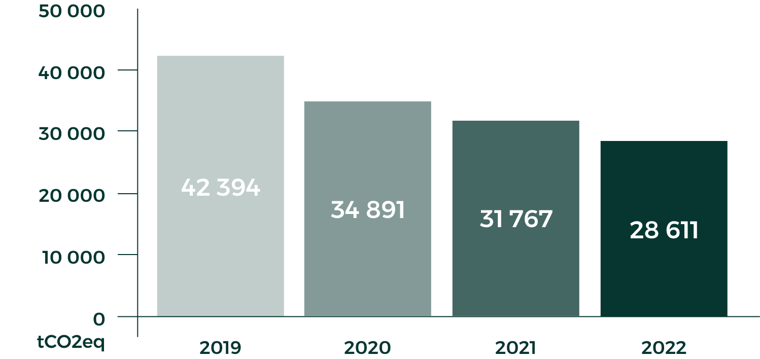 Zwischen 2019 und 2022 Reduzierung der Emissionen der Kategorien Scope 1 und 2